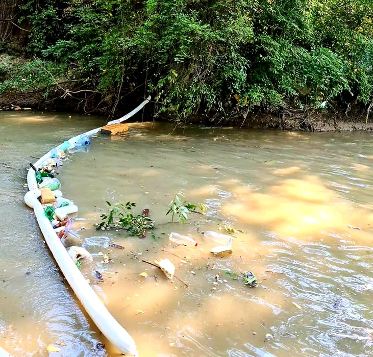 Imagini halucinante pe râul Ciorogârla, cu mormane de deșeuri care opturează scurgerea apelor
