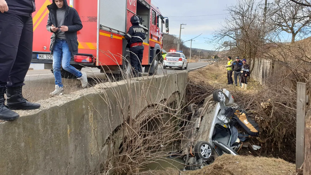 Imagini horror de la un accident din Bacău. O mașină a plonjat de pe un pod