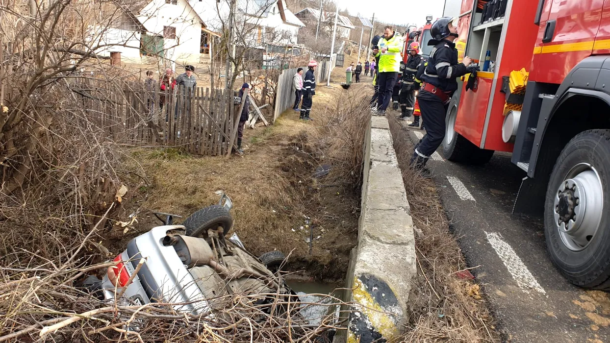 Imagini horror de la un accident din Bacău. O mașină a plonjat de pe un pod