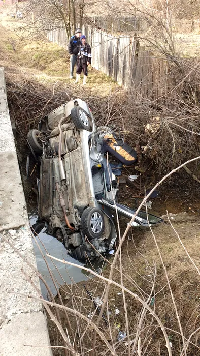 Imagini horror de la un accident din Bacău. O mașină a plonjat de pe un pod