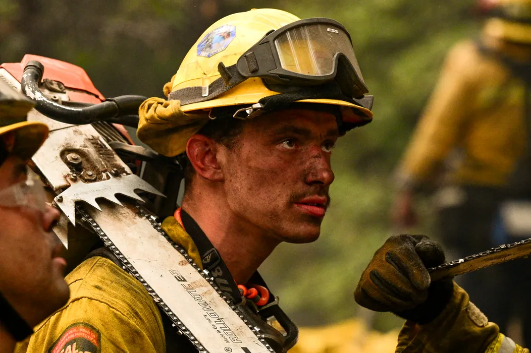 Firefighter hand crews put out hot spots near rustic mountain cabin homes on a hillside at the Dixie Fire, in Twain, California on July 26, 2021. After battling increasingly large and deadly wildfires non-stop for weeks, and with no respite in sight, firefighters in California are admitting they are burnt out. "After a point, you start getting a little screwy, your mental health doesn't do well," said 55-year-old fire captain David Tikkanen.,Image: 623568524, License: Rights-managed, Restrictions: TO GO WITH AFP STORY BY Camille CAMDESSUS: "US firefighters admit they are burnt out by endless blazes", Model Release: no, Credit line: Profimedia