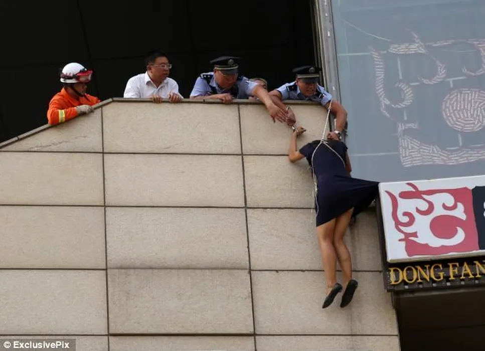 Imagini incredibile în Beijing. Cum au salvat polițiștii o femeie care voia să se sinucidă