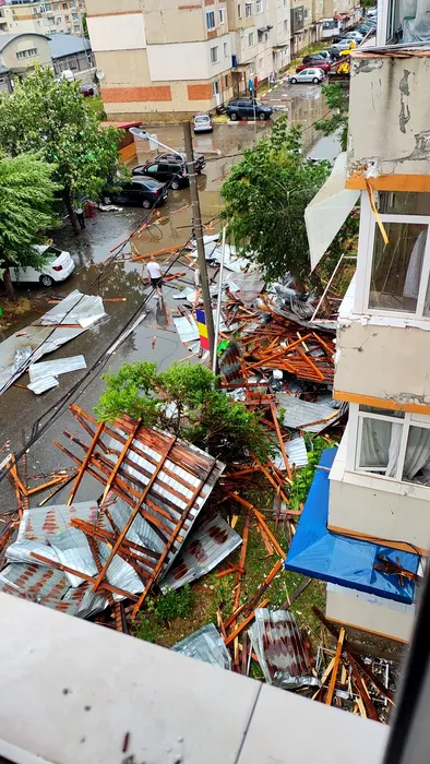 Imagini incredibile. O furtună a făcut prăpăd la Mioveni. Acoperișurile zboară ca avioanele de hârtie