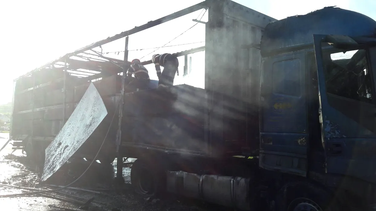 Imagini incredibile pe DN 7: un TIR încărcat cu rigips, distrus în totalitate de un incendiu