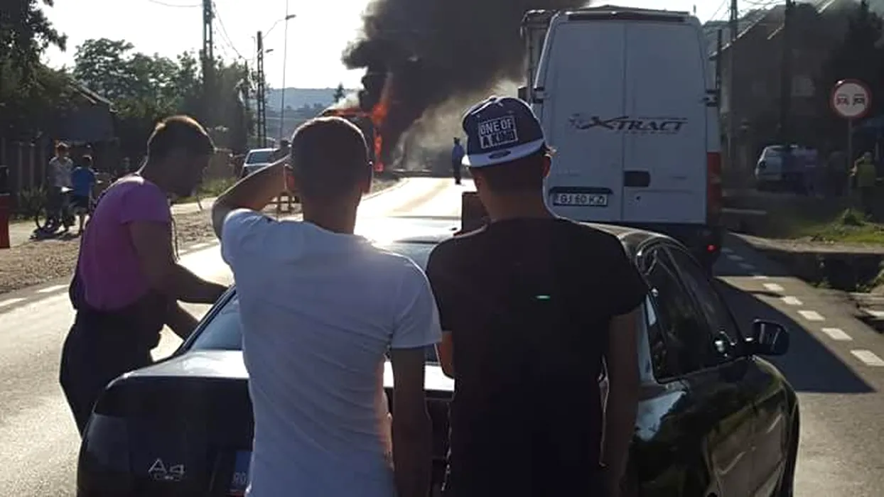 Imagini incredibile pe DN 7: un TIR încărcat cu rigips, distrus în totalitate de un incendiu