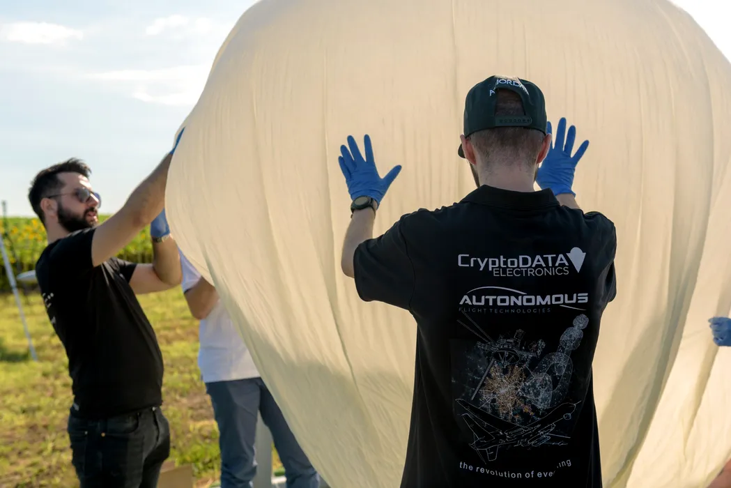 IMAGINI INEDITE. Compania românească CryptoDATA a lansat cu succes în stratosferă un satelit experimental purtat de un balon meteo