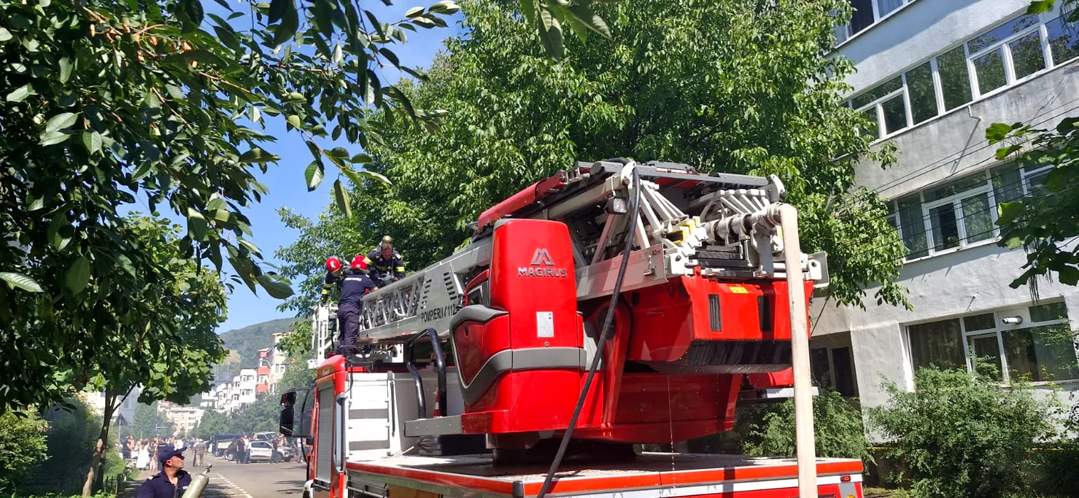 Imagini înfiorătoare cu un incendiu izbucnit la acoperișul unui bloc cu patru etaje din Piatra Neamț