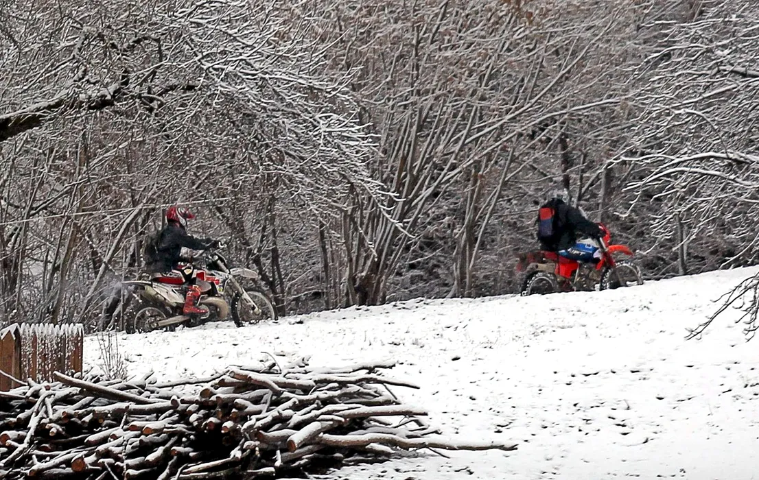 Prințul Harry în Transilvania pe o motocicletă enduro (dreapta) FOTO- Profimedia