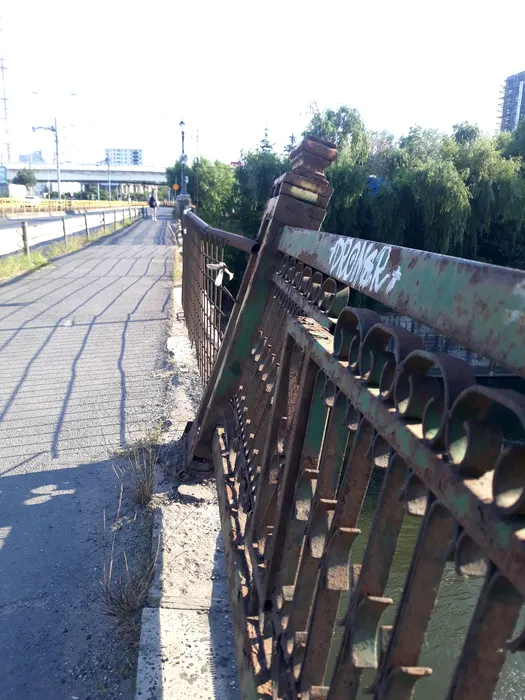 Imagini revoltătoare. Balustrada vechiului Pod Ciurel, în pericol să se prăbușească. Administrația Străzilor dă vina pe vechile conduceri pentru lipsa investițiilor de peste 30 de ani – FOTO
