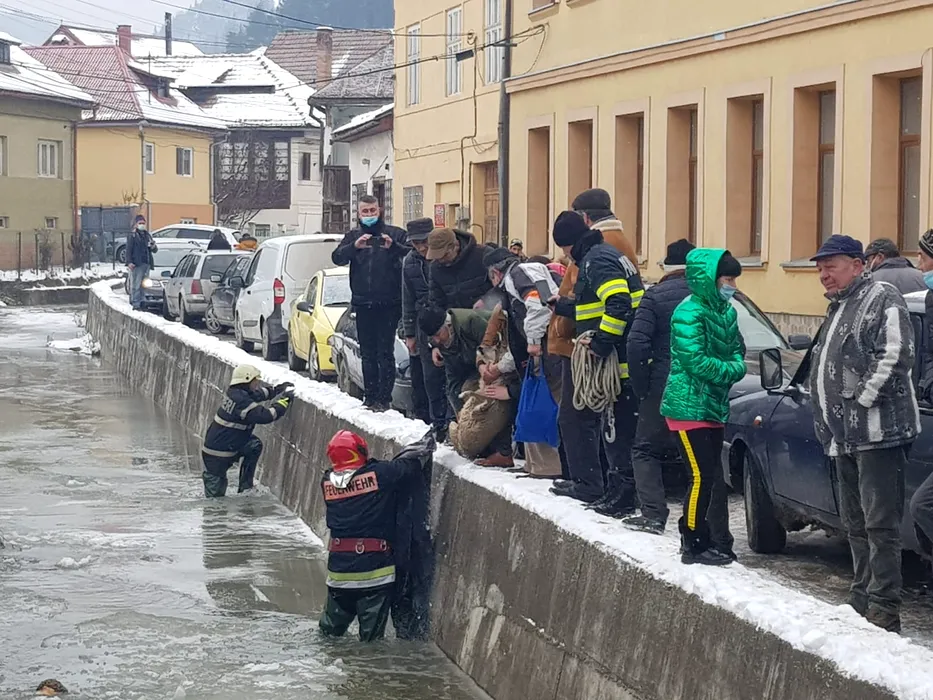 Imagini sfâșietoare cu o căprioară prinsă în sloiurile de gheață ale unui râu, surprinse în Alba! A fost salvată de pompieri!