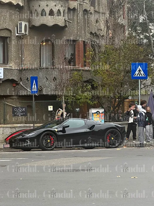 Imagini sfidătoare în Capitală. Un Ferrari, de jumătate de milion de euro, a fost parcat ostentativ, pe toată lățimea unei treceri de pietoni. Cui aparține bolidul