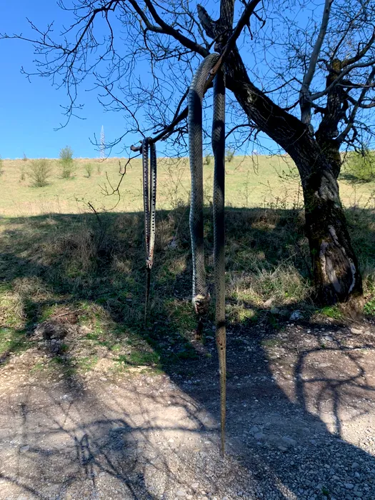 Imagini șocante cu doi șerpi atârnați într-un copac, lângă Ploiești. „Cineva i-a ucis pentru distracție” | DECLARAȚII EXCLUSIVE
