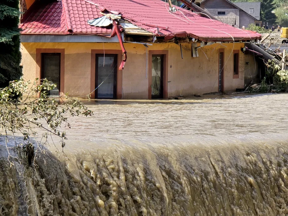 Imagini ȘOCANTE de la Broșteni! O casă este purtată de ape prin fața oamenilor îngroziți!