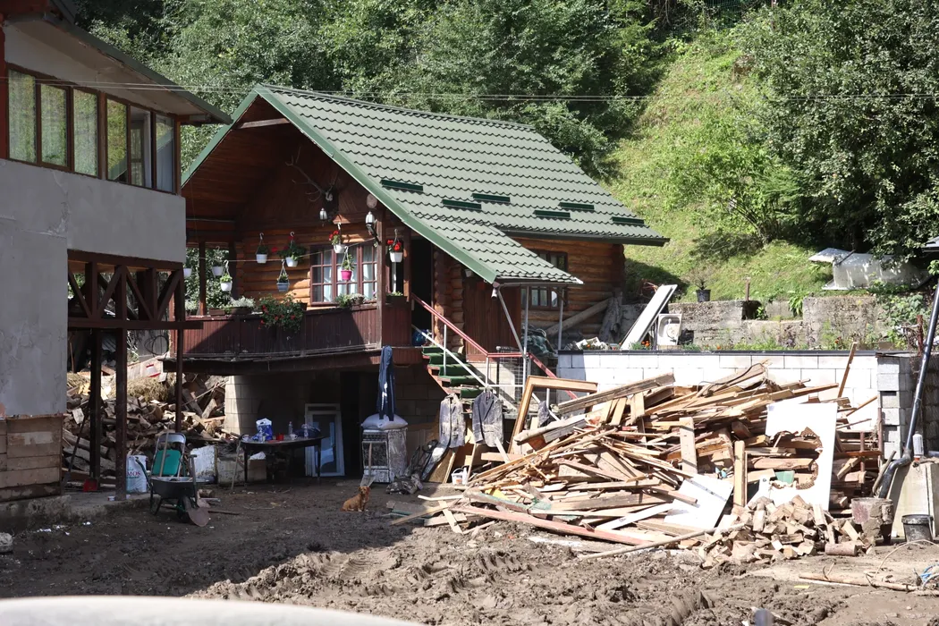 Imagini ȘOCANTE de la Broșteni! O casă este purtată de ape prin fața oamenilor îngroziți!