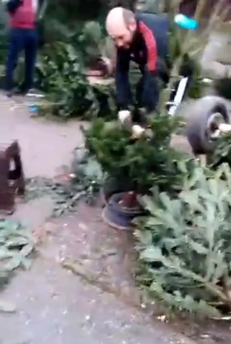 Imagini șocante | Distrugătorul de brazi face ravagii: Un român care pare nervos distruge mai mulți brazi cu o drujbă – VIDEO