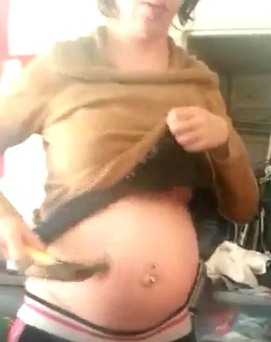 Imagini șocante: o femeie însărcinată în 8 luni se lovește cu un ciocan în burtă