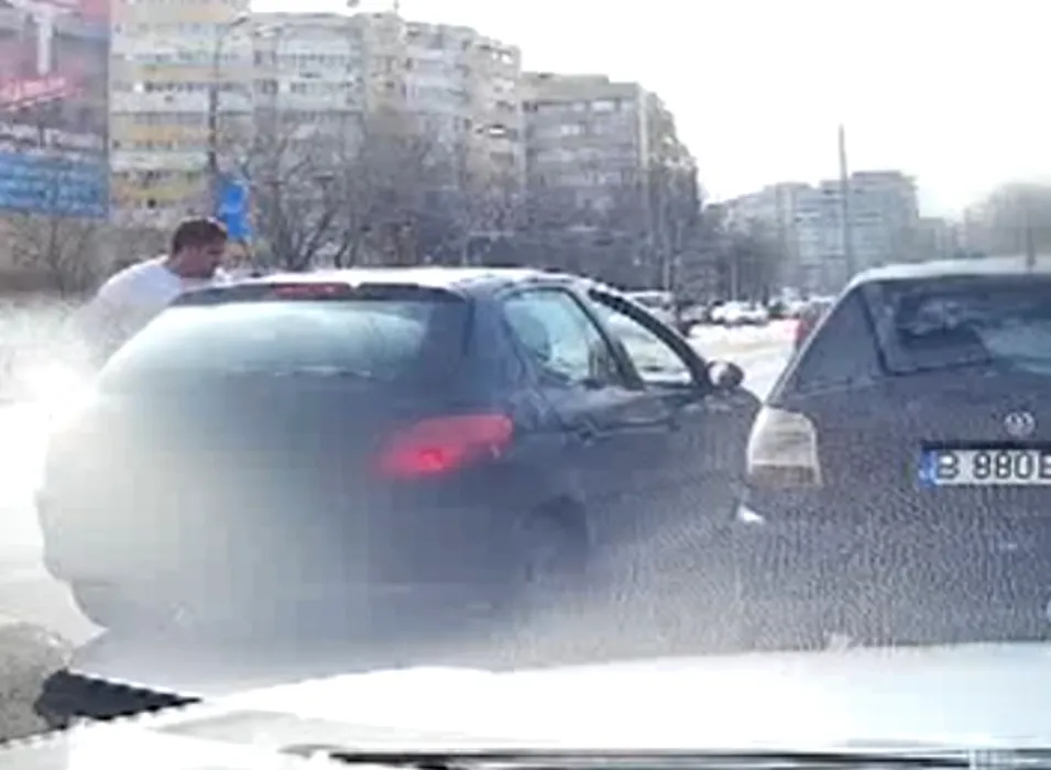 Imagini surprinse în traficul din București: un bărbat bate cu pumnii și picioarele un alt șofer