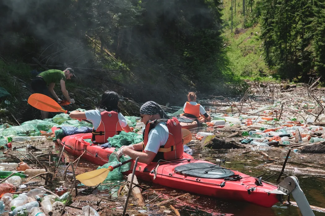 Imagini uluitoare din Apuseni, cu Lacul Beliș, acoperit de gunoaie. Deșeurile au fost strânse în 2 zile