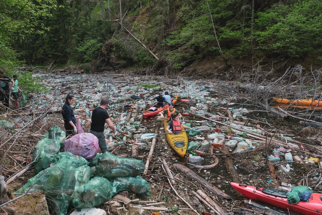 Imagini uluitoare din Apuseni, cu Lacul Beliș, acoperit de gunoaie. Deșeurile au fost strânse în 2 zile