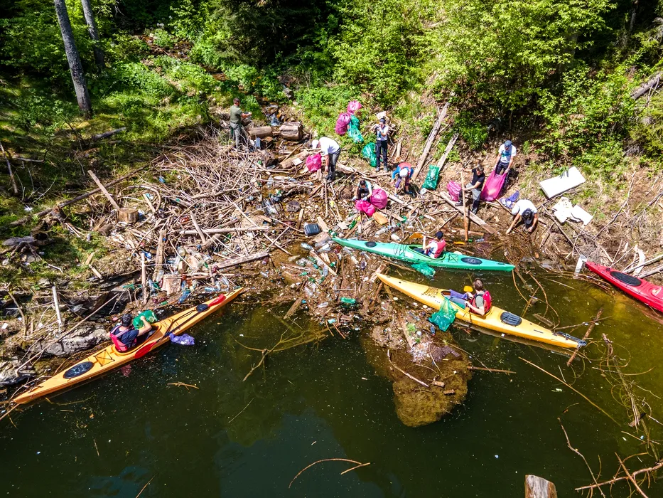 Imagini uluitoare din Apuseni, cu Lacul Beliș, acoperit de gunoaie. Deșeurile au fost strânse în 2 zile