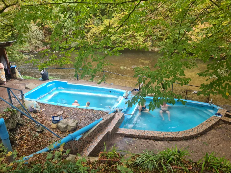 Imagini uluitoare la Băile Herculane! Cum arată cădițele în care își caută românii sănătatea, în apa sulfuroasă de pe malul Cernei