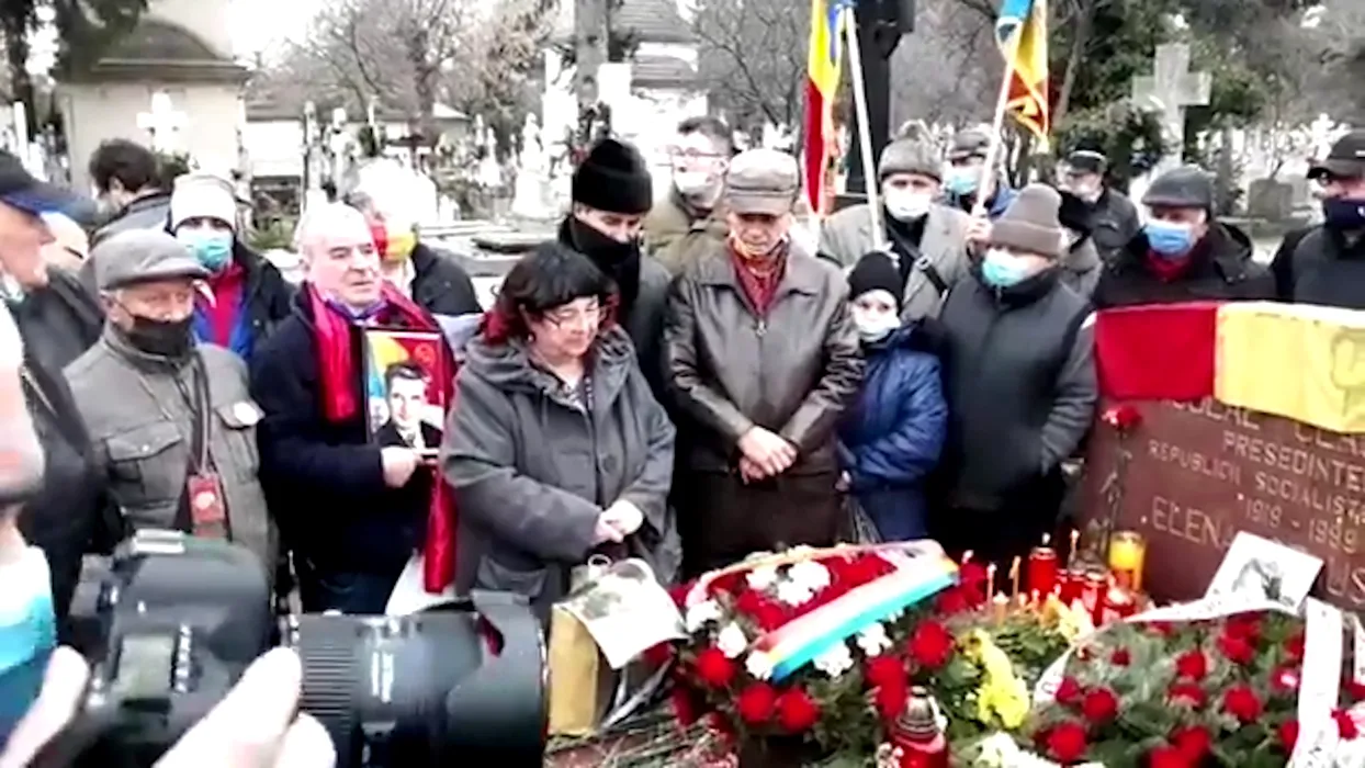 Imagini unice de la mormântul soților Ceaușescu, unde comuniștii înflăcărați s-au strâns ciorchine, unii fără măști, și l-au plâns pe „Întâiul cârmaci” de ziua lui!