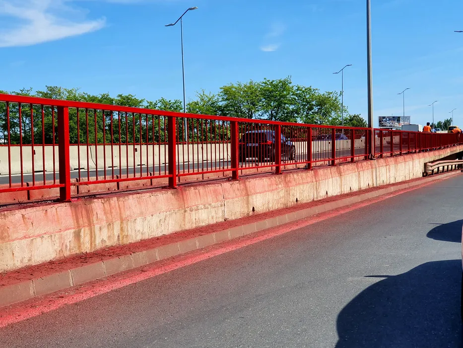 Imagini virale la Otopeni: „Dorel” a vopsit balustradele podului cu tot cu bordurile, mașinile parcate și vehiculele din trafic. Reacția unui oficial din Ministerul Transporturilor (FOTO, VIDEO)
