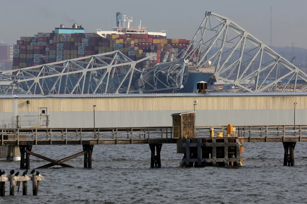 Un pod de 2,5 km din Baltimore s-a prăbuşit după ce a fost lovit de o navă / Sursa foto: Profimedia