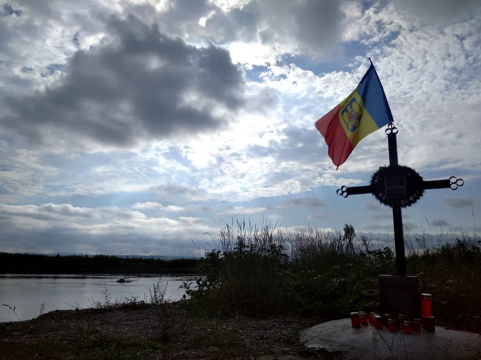 Imaginile durerii: Părinții celor cinci copii înecați în Siret au pus o cruce cu drapelul, în locul tragediei