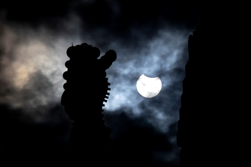 Eclipsă parțială de Soare, 29 martie 2025, în Spania, Barcelona, Catedrala Sagrada Familia FOTO: Profimedia