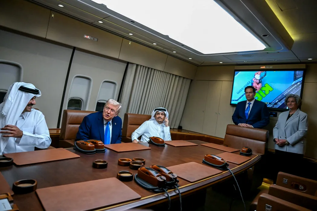În drum spre Asia, Trump face o aterizare „surpriză”. Îl ia în Air Force One pe emirul Qatarului, unul dintre bogații lumii, care i-a dăruit un avion