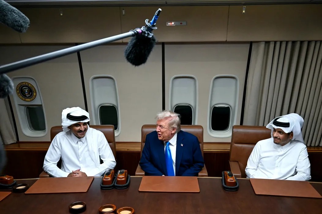 În drum spre Asia, Trump face o aterizare „surpriză”. Îl ia în Air Force One pe emirul Qatarului, unul dintre bogații lumii, care i-a dăruit un avion