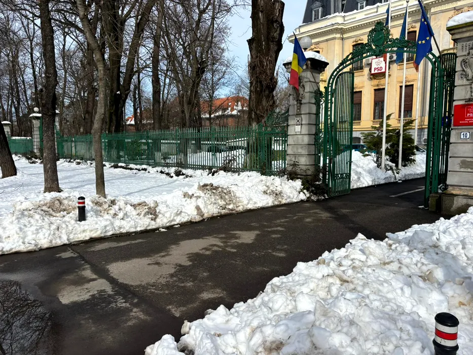 GALERIE FOTO: În timp ce românii sunt amendați dacă nu-și curăță trotuarele, sediile partidelor sunt îngropate în nămeți. Voievozii României stau cu bărbile în zăpadă, la AUR, iar liberalii și-au curăţat o potecă. Și prin fața sediului PSD trecătorii abia se strecoară printre mormane