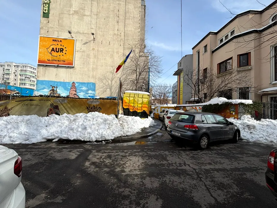 GALERIE FOTO: În timp ce românii sunt amendați dacă nu-și curăță trotuarele, sediile partidelor sunt îngropate în nămeți. Voievozii României stau cu bărbile în zăpadă, la AUR, iar liberalii și-au curăţat o potecă. Și prin fața sediului PSD trecătorii abia se strecoară printre mormane