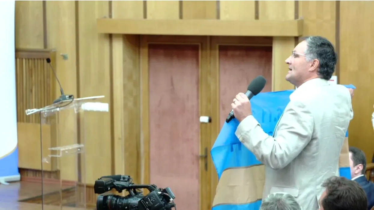 În vizită în HAR-COV, Iohannis a fost întâmpinat cu imnul Ținutului Secuiesc. Reacția președintelui când i s-a dat steagul secuiesc