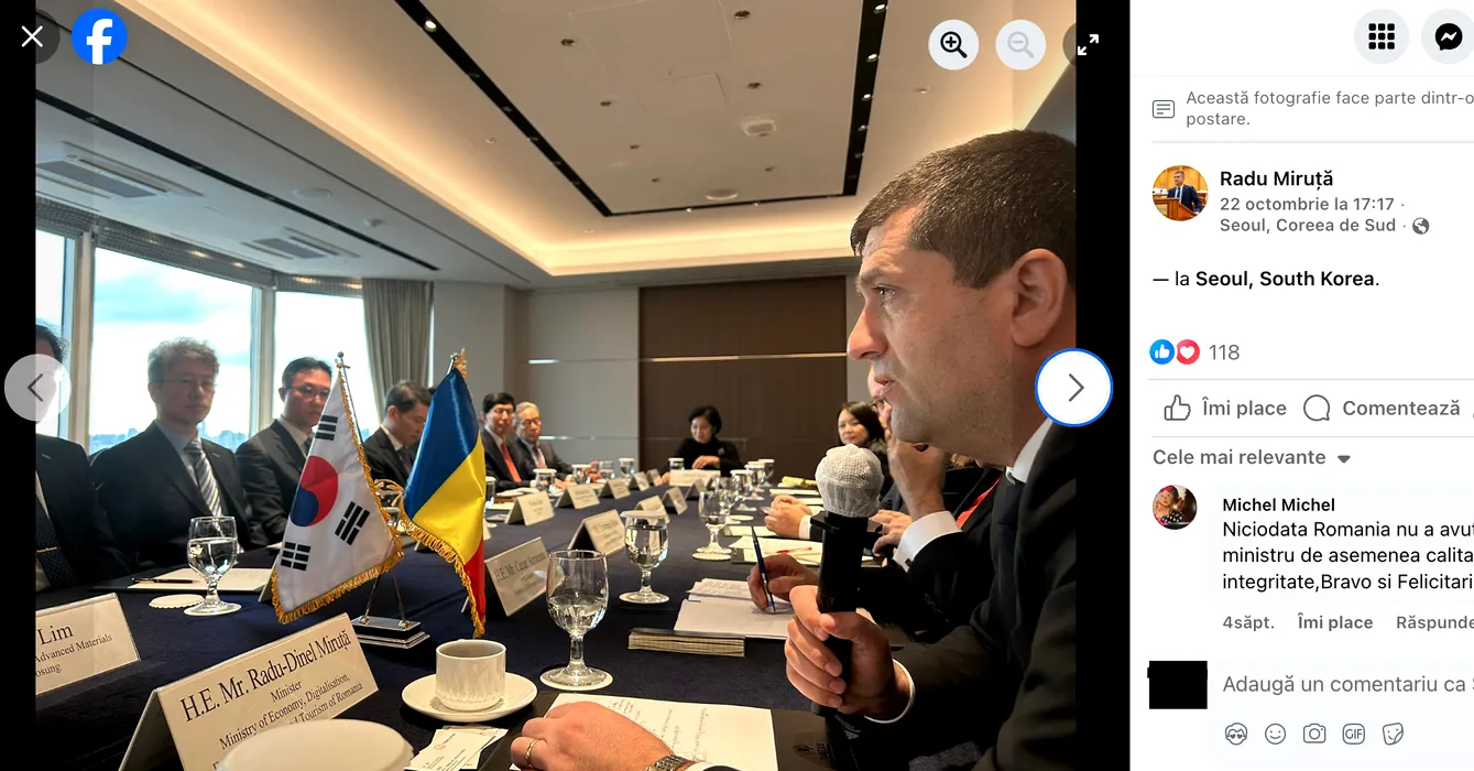 GALERIE FOTO: Înainte de Arabia Saudită, ministrul Economiei, Radu Miruță a fost și în Coreea de Sud, tot pe banii gazdelor. I-a luat cu el pe șefa de cabinet, Ioana Răduca, plasată în CA-ul Orange și pe prietenul din copilărie, jucător de poker, angajat secretar de stat în minister. Gândul publică memorandumurile celor două deplasări