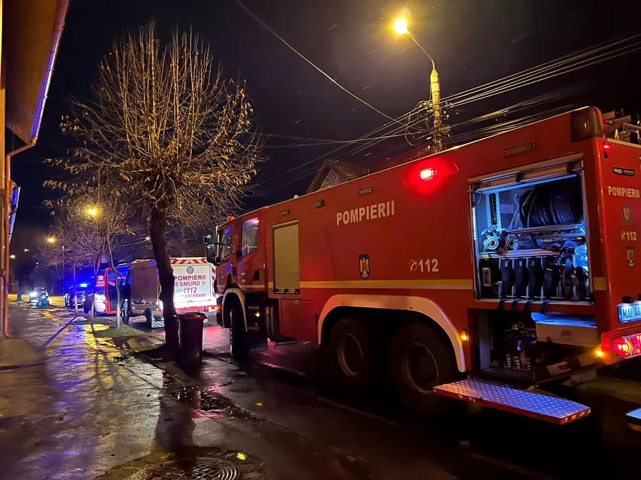 FOTO – Panică într-un bloc din Mureș: Peste 30 de oameni au fugit din case în miez de noapte, din cauza unui incendiu