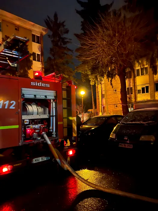 FOTO – Panică într-un bloc din Mureș: Peste 30 de oameni au fugit din case în miez de noapte, din cauza unui incendiu