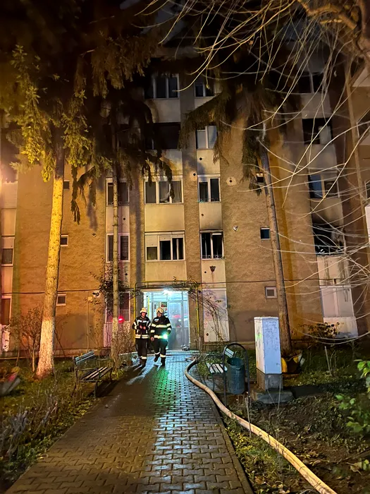 FOTO – Panică într-un bloc din Mureș: Peste 30 de oameni au fugit din case în miez de noapte, din cauza unui incendiu