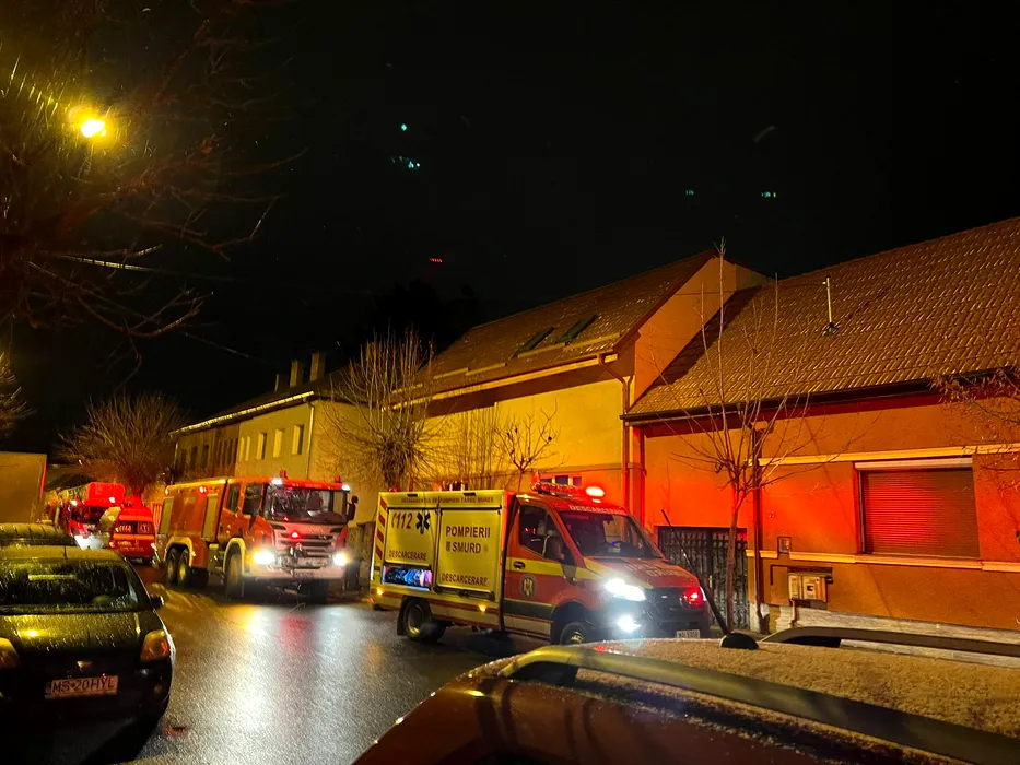 FOTO – Panică într-un bloc din Mureș: Peste 30 de oameni au fugit din case în miez de noapte, din cauza unui incendiu