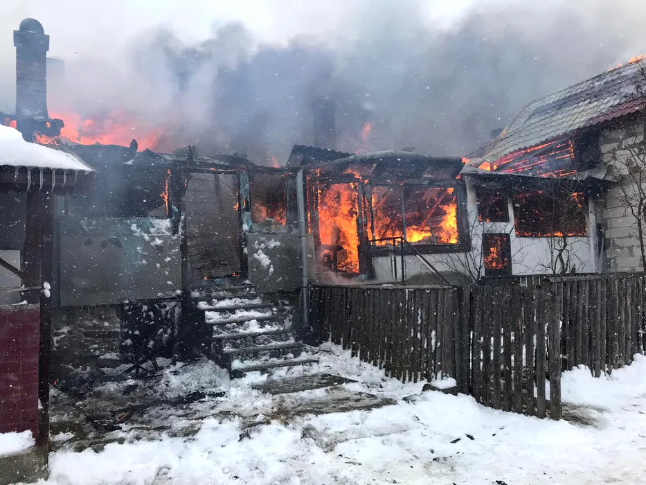 Incendiu de proporții în Covasna. Opt case lipite între ele, distruse de flăcări. Imagini de la fața locului