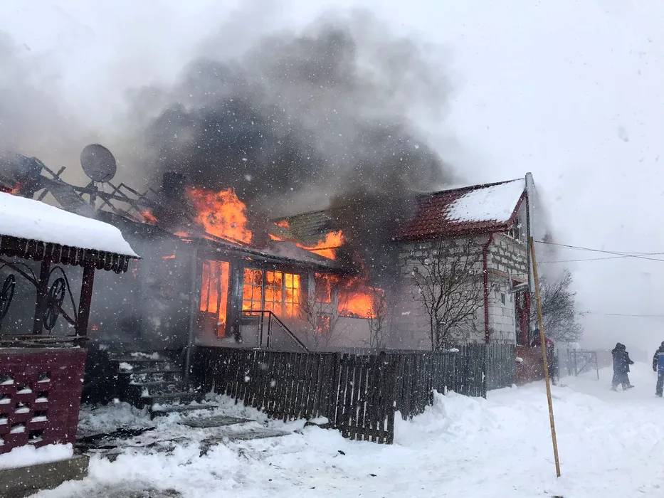Incendiu de proporții în Covasna. Opt case lipite între ele, distruse de flăcări. Imagini de la fața locului