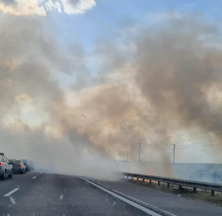 INCENDIU de vegetație lângă Autostrada Soarelui. A2, ÎNCHISĂ temporar! Trenurile, 1.400 de minute întârziere