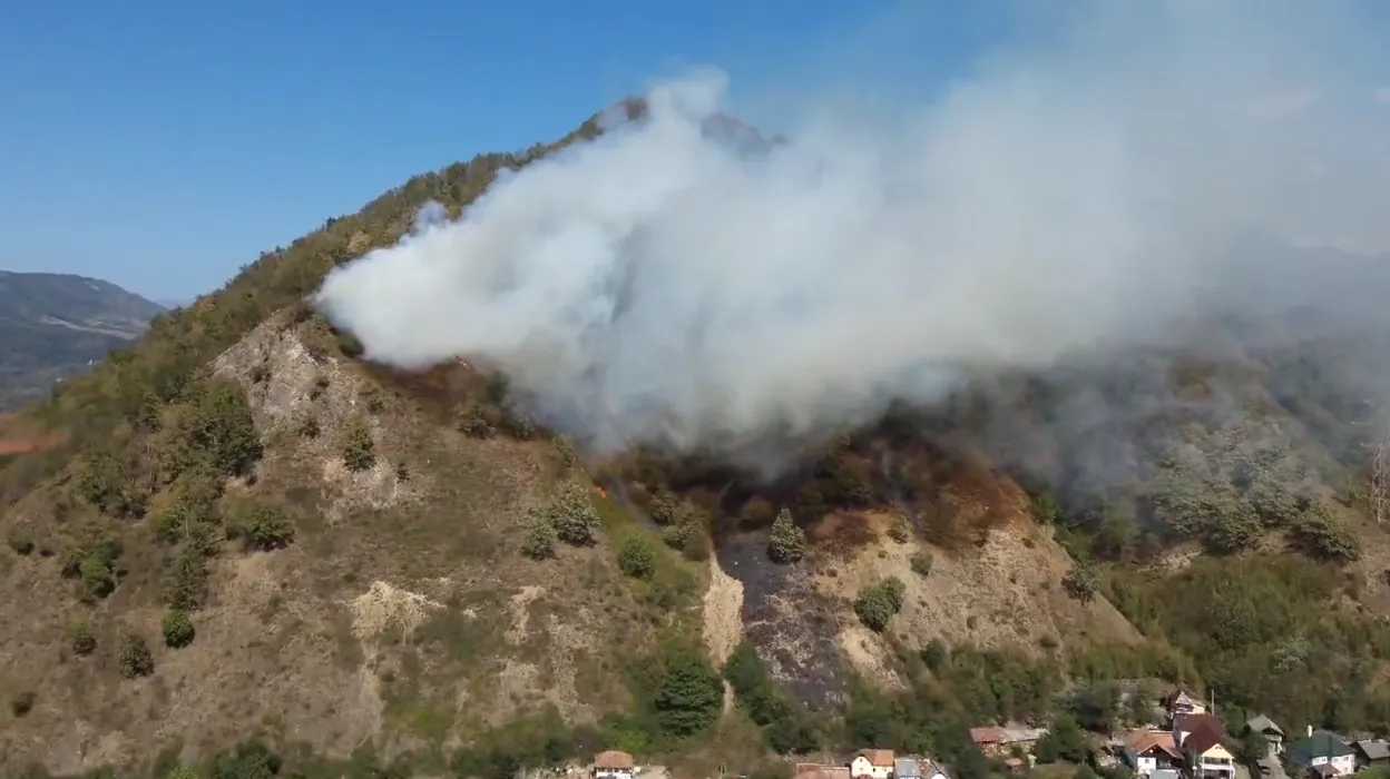 Incendiu de vegetație în localitatea RACOVIȚA din județul Vâlcea. Focul amenință și casele oamenilor