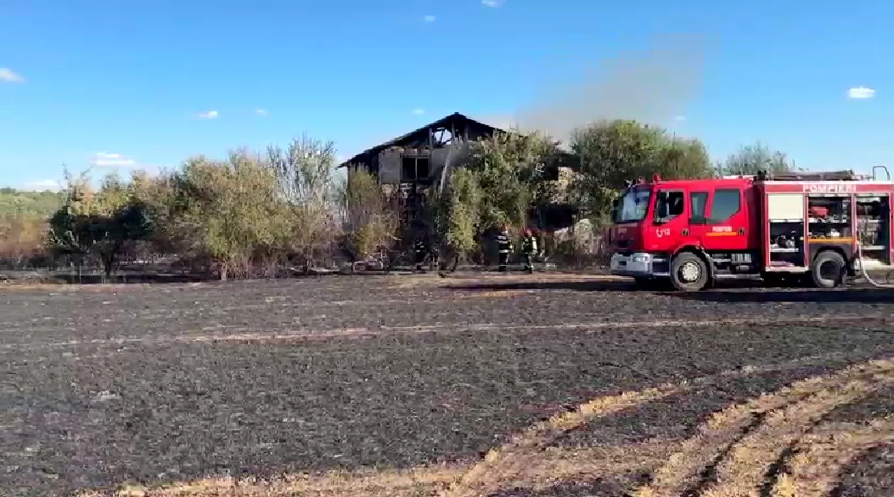 Incendiu de vegetație într-o localitate din Ilfov. O casă a luat FOC