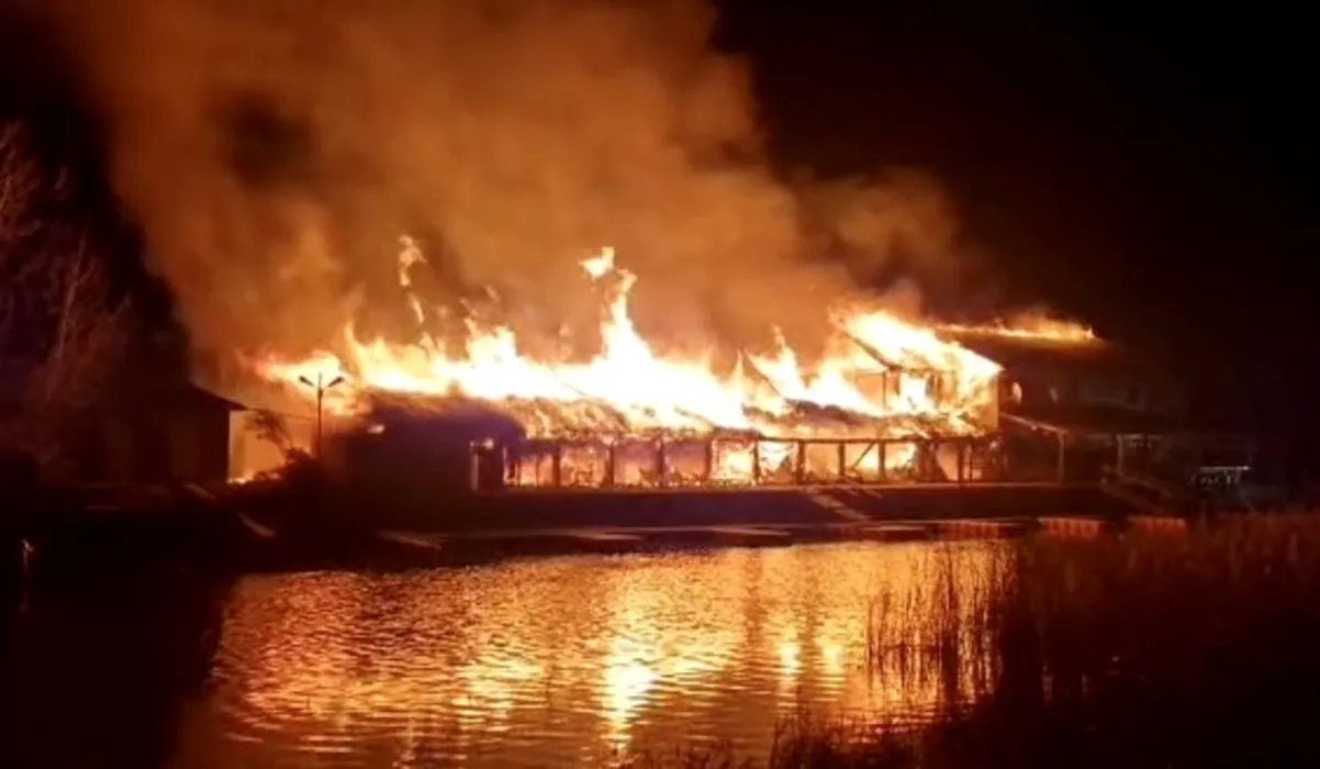 GALERIE FOTO: FOTO-VIDEO – O pensiune din Delta Dunării s-a făcut scrum / O persoană a avut nevoie de îngrijiri medicale / Şapte turişti s-au autoevacuat