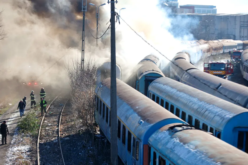 Incendiu în zona de triaj dintre Gara Basarab şi Podul Grant. Ard mai multe vagoane dezafectate, cu degajări mari de fum / A fost emis mesaj RoAlert