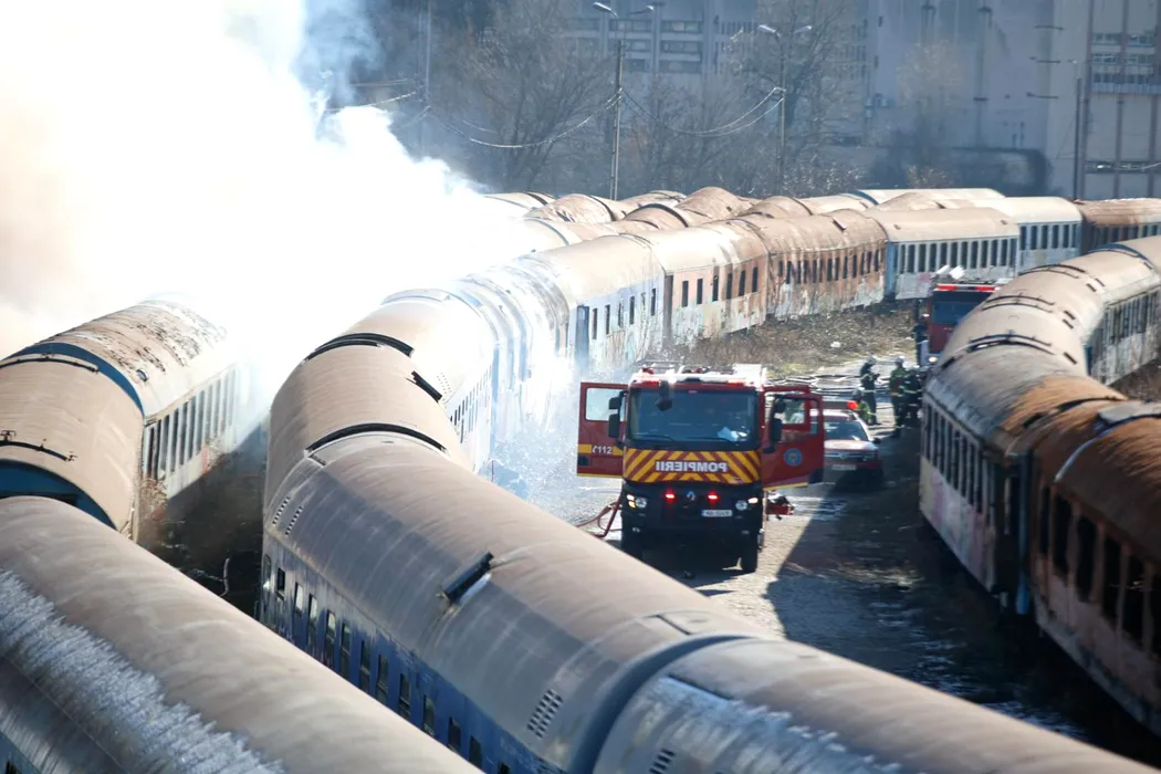 Incendiu în zona de triaj dintre Gara Basarab şi Podul Grant. Ard mai multe vagoane dezafectate, cu degajări mari de fum / A fost emis mesaj RoAlert