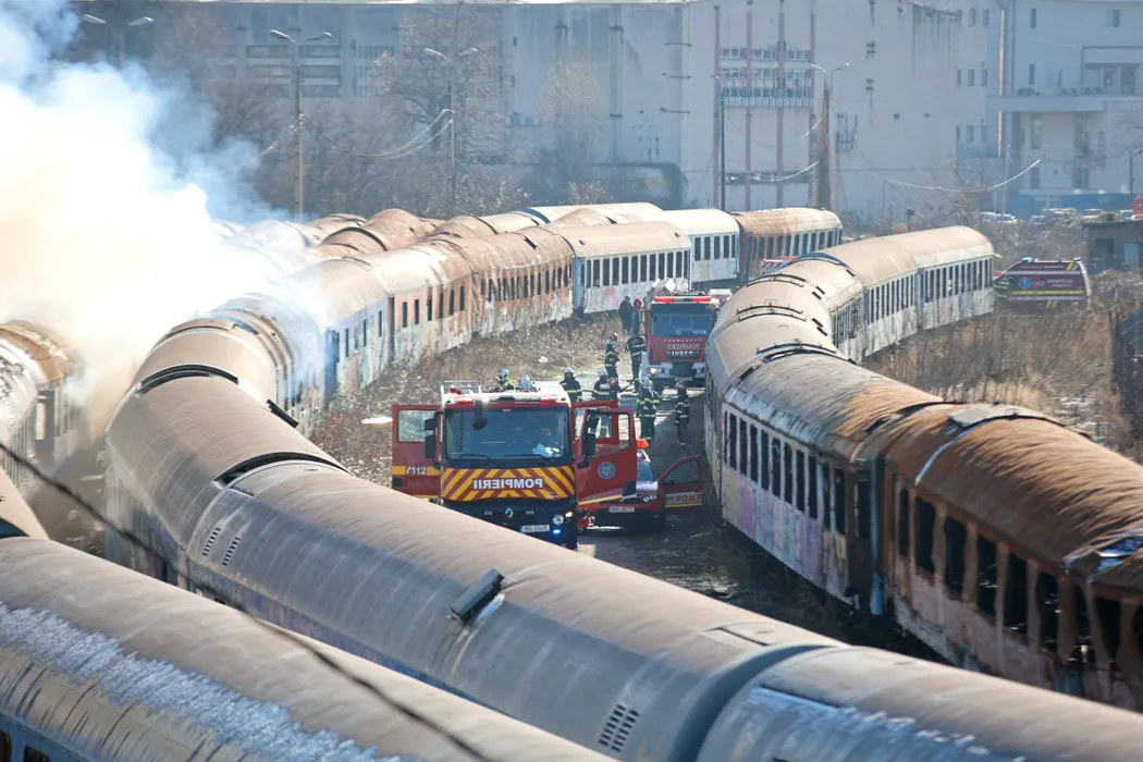 Incendiu în zona de triaj dintre Gara Basarab şi Podul Grant. Ard mai multe vagoane dezafectate, cu degajări mari de fum / A fost emis mesaj RoAlert