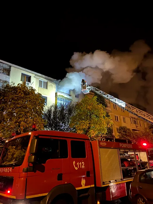Incendiu într-un bloc de locuințe din Pitești. Zeci de locatari au fost evacuați | FOTO, VIDEO